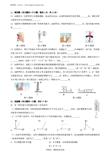 转载请注明出处: 名校卷 » 2022-2023-2长沙市一中双语实验学校初二第一次月考物理试卷(含答案)
