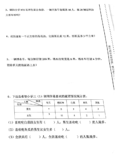 2022-2023-2开福区三年级期末数学试卷(无答案)