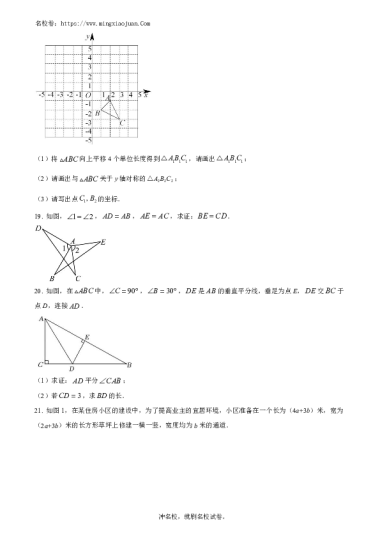转载请注明出处: 名校卷 » 湖南师大附中博才实验中学2022-2023学年八年级上学期数学期中数学试卷(原卷版)