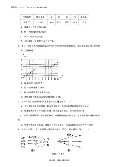 转载请注明出处: 名校卷 » 【物理含答案】2020-2021:雅礼实验中学、西雅中学八年级下学期入学物理试卷