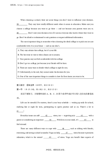 转载请注明出处: 名校卷 » 湖南省长沙市雅礼中学2021-2022学年高一上学期第三次月考英语试题