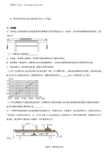 转载请注明出处: 名校卷 » 附中一中-名校联考联合体2023-2024学年高一上学期第二次联考物理试卷(A)