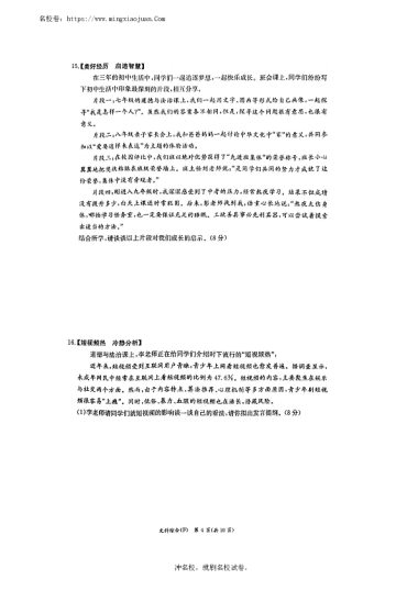 转载请注明出处: 名校卷 » 2023年附中教育集团中考一模道德与法治试卷(含答案)