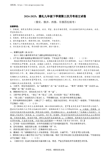 转载请注明出处: 名校卷 » 2024-2025-1雅礼九年级上【语文】第三次月考(含答案)
