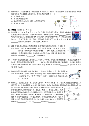 转载请注明出处: 名校卷 » 附中博才2023-2024-2九下一次月考物理(含参考答案)