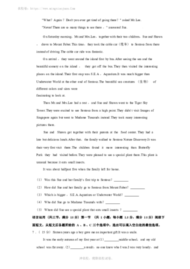 ©试卷著作权归作者所有。本站所有试卷来源于网络,仅供学习使用,祝您考上理想的学校!