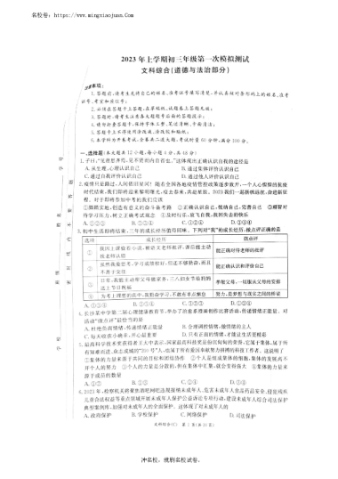 转载请注明出处: 名校卷 » 2023年长郡教育集团中考一模道德与法治试卷(含答案)
