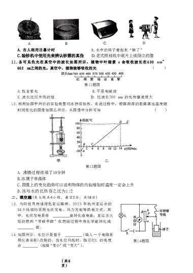 2023-2024-1湖湘C13教育联盟中考一模物理试卷(含答案)
