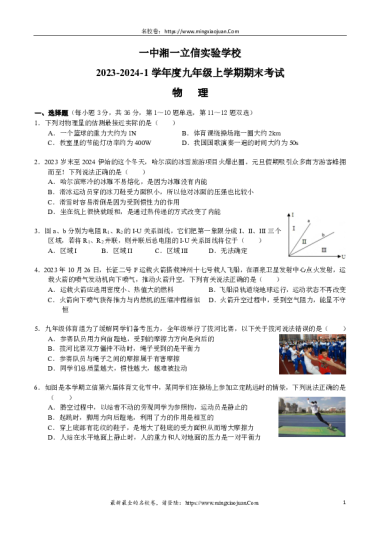 一中湘一立信实验学校2023-2024-1学年度九年级上学期物理期末考试