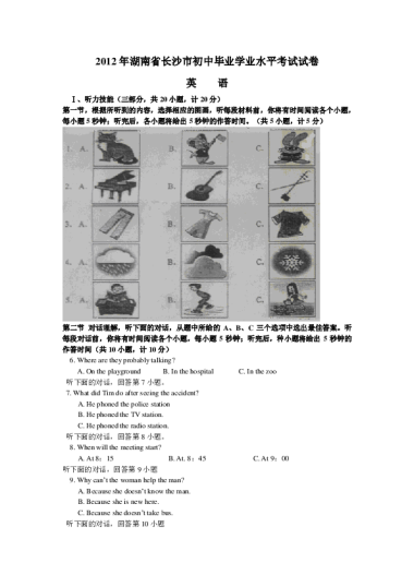 转载请注明出处: 名校卷 » 2012年湖南省长沙市中考英语真题及答案