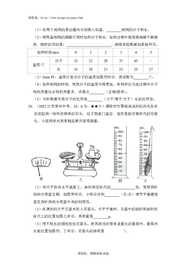 转载请注明出处: 名校卷 » 常州市二〇二二年初中学业水平考试物理试题-原题