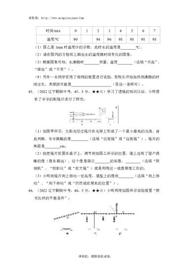 转载请注明出处: 名校卷 » 2022年朝阳市初中学业水平考试理科综合试题物理部分-原题
