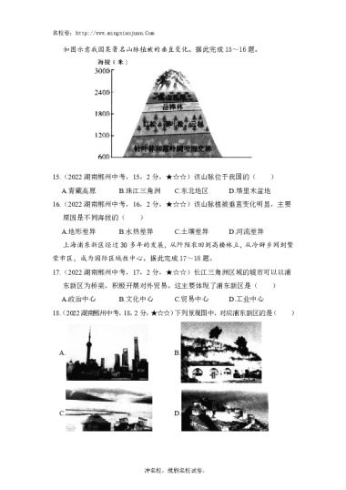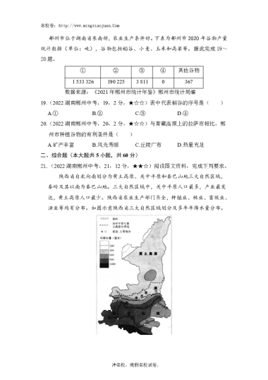 转载请注明出处: 名校卷 » 2022年郴州市初中学业水平考试试卷地理试卷-原题