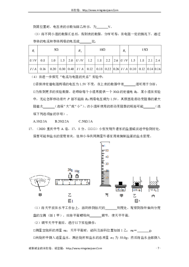 转载请注明出处: 名校卷 » 重庆市2020年初中学业水平暨高中招生考试物理试题(A卷)