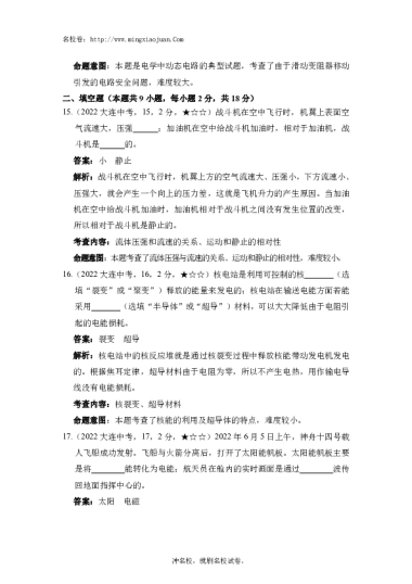 转载请注明出处: 名校卷 » 大连市2022年初中毕业升学考试物理-解析