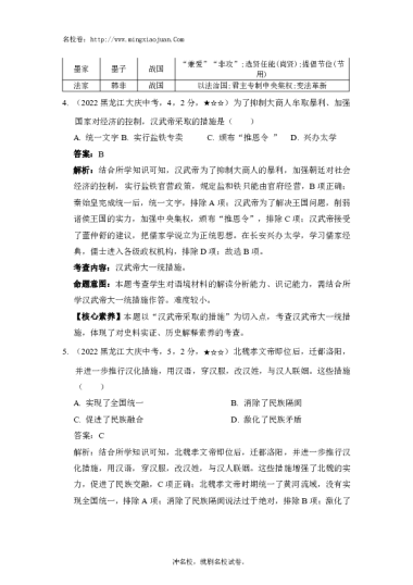 转载请注明出处: 名校卷 » 2022年大庆市初中升学考试历史-解析