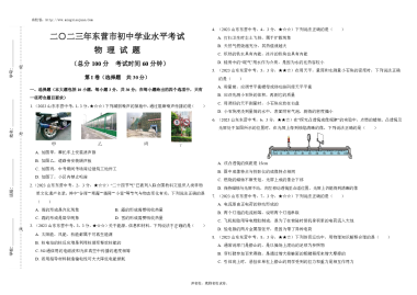 二〇二三年东营市初中学业水平考试物理试题-A3版原卷
