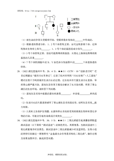 转载请注明出处: 名校卷 » 2022年恩施州八年级学生学业水平考试生物学试题卷-原题