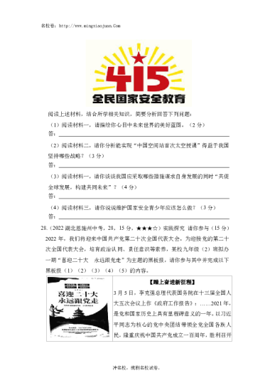转载请注明出处: 名校卷 » 2022年恩施州初中毕业学业水平考试道法