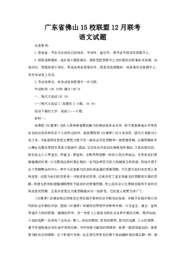 广东省佛山15校联盟12月联考语文试题