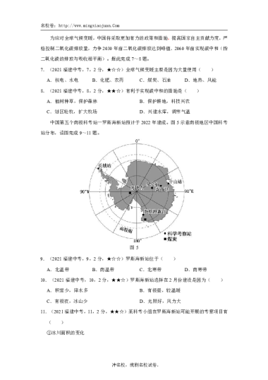 转载请注明出处: 名校卷 » 2021年福建省初中学业水平考试地理试卷