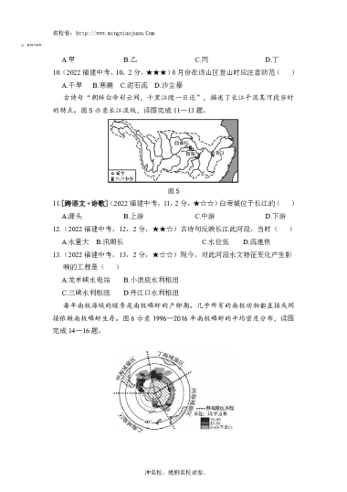 转载请注明出处: 名校卷 » 2022年福建省初中学业水平考试地理-原题