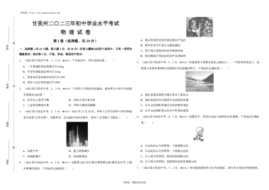 转载请注明出处: 名校卷 » 甘孜州二〇二三年初中学业水平考试物理试卷-A3版原卷