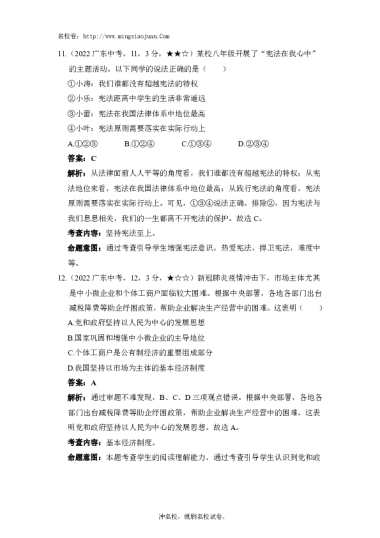 转载请注明出处: 名校卷 » 2022年广东省初中学业水平考试道德与法治(开卷)-解析