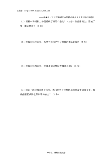 转载请注明出处: 名校卷 » 广元市2022年初中学业水平考试暨高中阶段学校招生考试历史-原题
