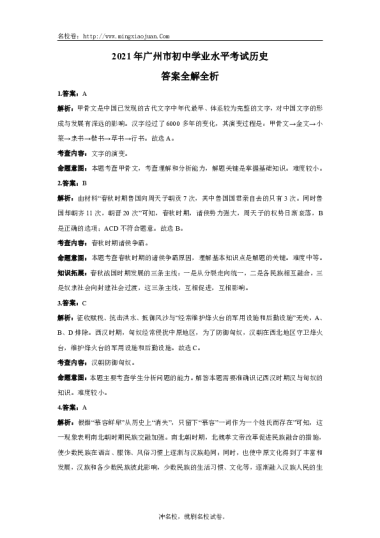 转载请注明出处: 名校卷 » 2021年广州市初中学业水平考试历史