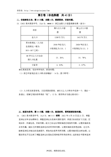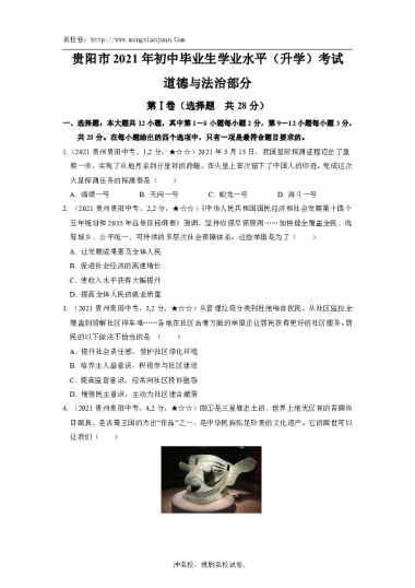 转载请注明出处: 名校卷 » 贵阳市2021年初中毕业生学业水平(升学)考试道德与法治部分