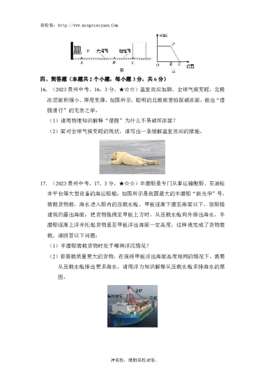 转载请注明出处: 名校卷 » 贵州省2023年初中学业水平考试(中考)试题卷理科综合物理部分-原题
