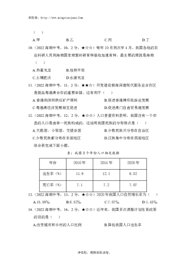 转载请注明出处: 名校卷 » 海南省2022年初中学业水平考试地理-原题