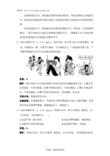 转载请注明出处: 名校卷 » 海南省2022年初中学业水平考试道德与法治-解析