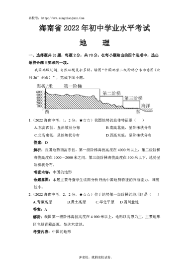 转载请注明出处: 名校卷 » 海南省2022年初中学业水平考试地理-解析