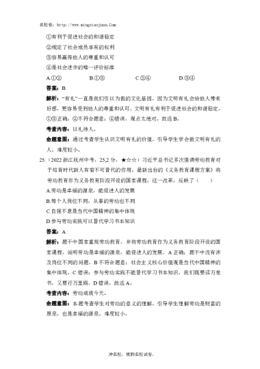 转载请注明出处: 名校卷 » 2022年浙江省杭州市初中毕业生学业考试道德与法治试题卷-解析