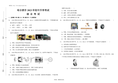 哈尔滨市2023年初中升学考试综合考试物理-A3版原卷