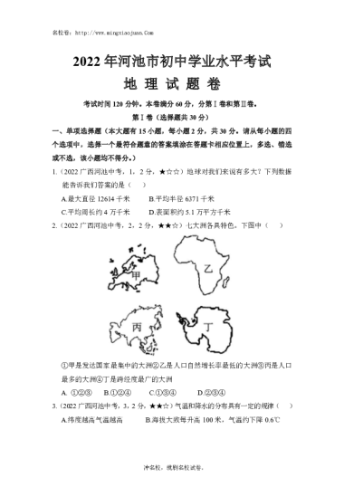 转载请注明出处: 名校卷 » 2022年河池市初中学业水平考试地理试题卷-原题
