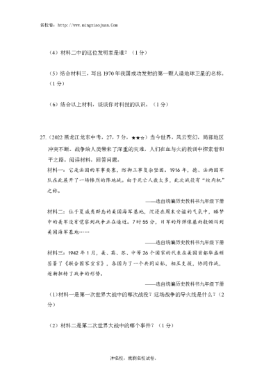 转载请注明出处: 名校卷 » 黑龙江省龙东地区2022年初中毕业学业统一考试历史试题-原题