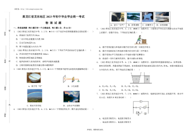 黑龙江省龙东地区2023年初中毕业学业统一考试物理试题-A3版原卷