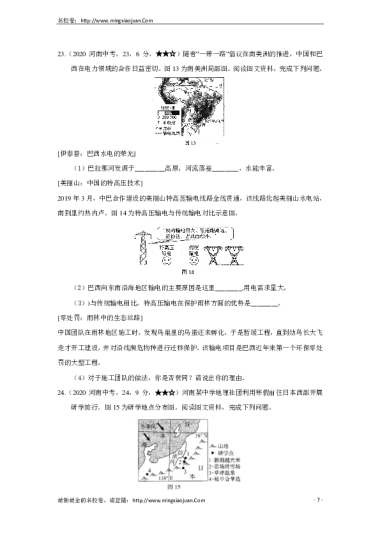 转载请注明出处: 名校卷 » 2020年河南省普通高中招生考试试卷地理