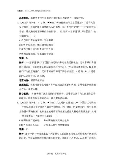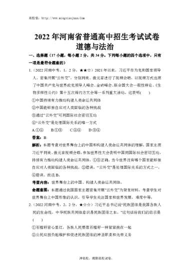 转载请注明出处: 名校卷 » 2022年河南省普通高中招生考试试卷道德与法治-解析