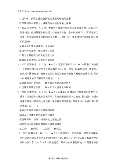 转载请注明出处: 名校卷 » 2022年河南省普通高中招生考试试卷道德与法治
