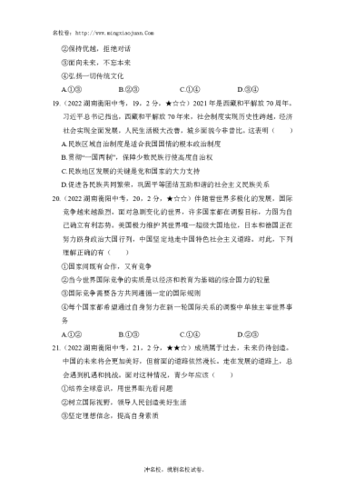 转载请注明出处: 名校卷 » 2022年衡阳市初中学业水平考试试卷道德与法治