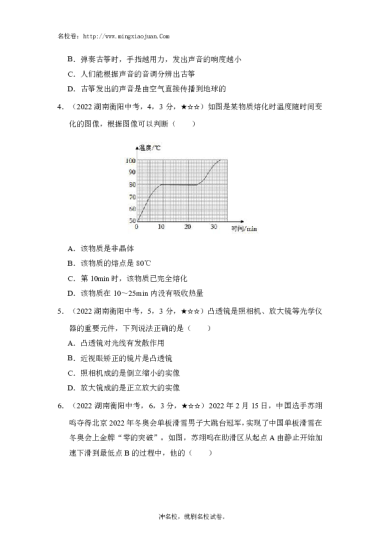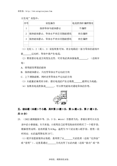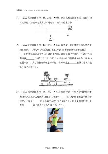 转载请注明出处: 名校卷 » 2022年衡阳市初中学业水平考试试卷物理-原题