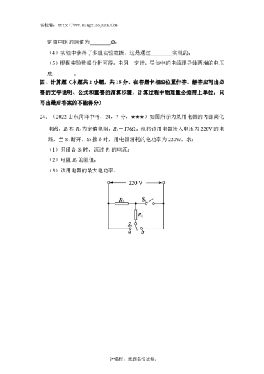 转载请注明出处: 名校卷 » 菏泽市二〇二二年初中学业水平考试物理(中考)-原题