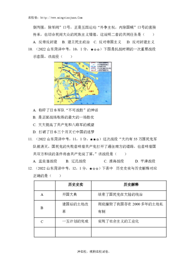转载请注明出处: 名校卷 » 菏泽市二〇二二年初中学业水平考试(中考)历史试题-原题