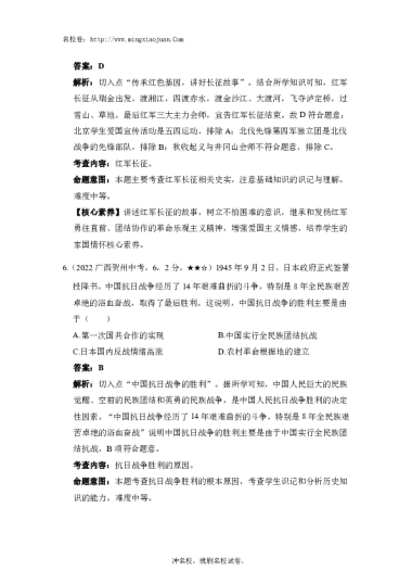 转载请注明出处: 名校卷 » 广西贺州市2022年中考历史试卷-原题
