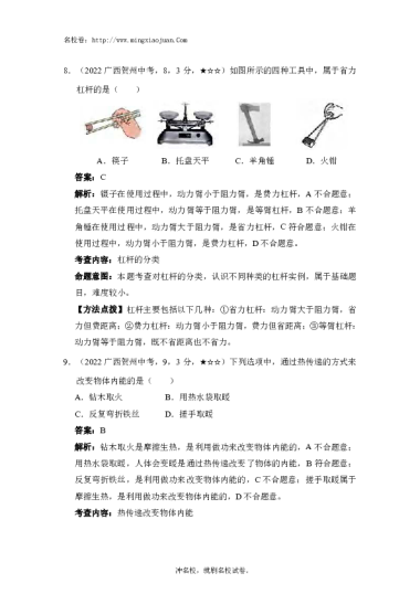 转载请注明出处: 名校卷 » 2022年贺州市学业水平考试试卷物理-解析