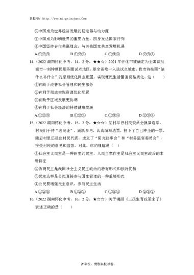转载请注明出处: 名校卷 » 2022年怀化市初中学业水平考试试卷道法